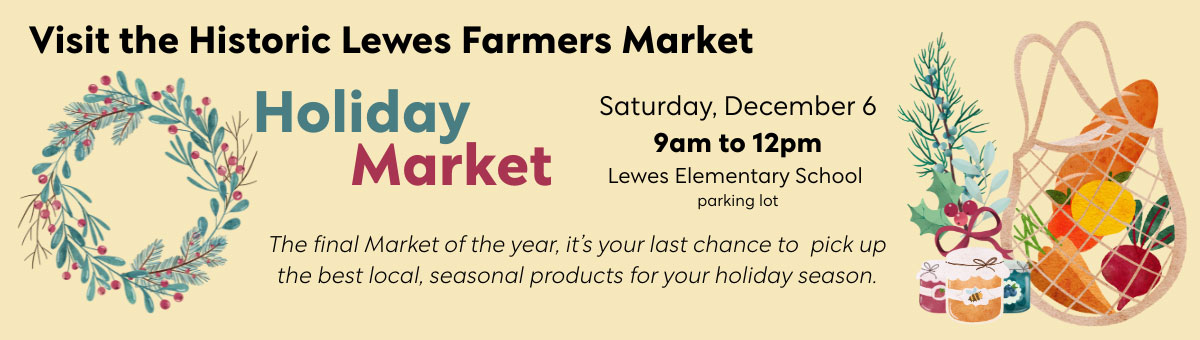 Last chance to visit the Market to celebrate with friends and pick up the best seasonal products for your holiday season. This special Market features all your favorite farmers and producers with great local squash, sweet potatoes, jams, turkey, hams, baked goods, wreaths, and much more.